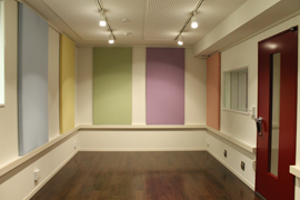 数々の高品質なスタジオ施工実績を持つ 「アコースティック・エンジニアリング社」 の設計により、抜群の音響空間を実現。 ナチュラルな反響音が、練習の質を高めます。 防音材の移動により、部屋の調音も可能で、よりあなたに適した環境で、音楽を楽しんでいただけます。